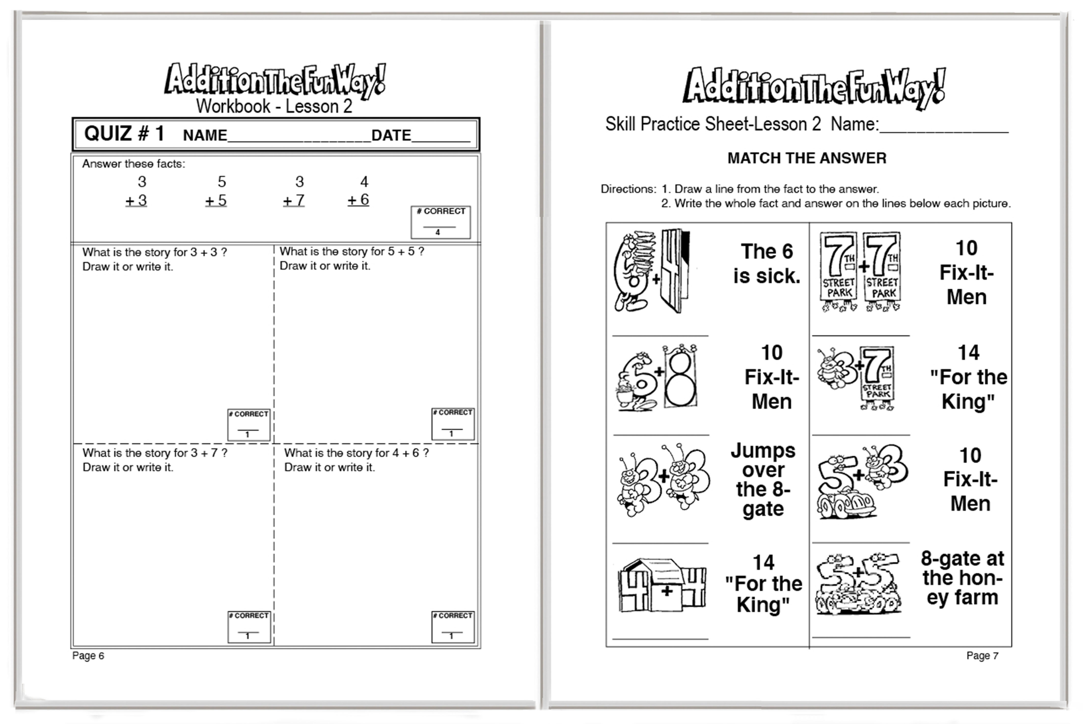 Assign the workbook pages after teaching the stories in the Addition the Fun Way Book for Kids.