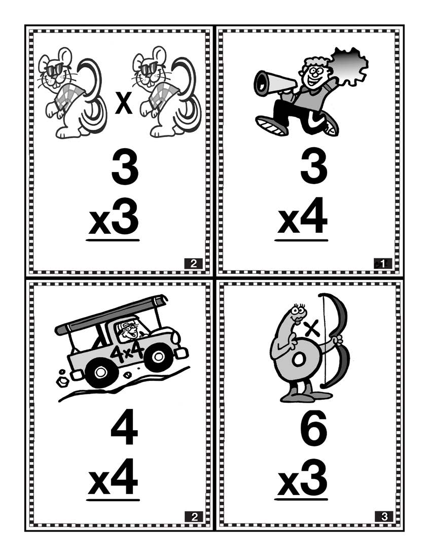 …an integral part of the Times Program. Clue cards have the story characters from the Times Book for Kids for the 3’s, 4’s, 6’s, 7’s, and 8’s. The 1’s, 2’s, 5’s, and 9’s are plain. Two sets of clue cards are needed for the games in the Teacher’s Manual. Split your students into two groups and each group uses one set. Full set but no reversals for example, 6×8 is not duplicated as 8×6.